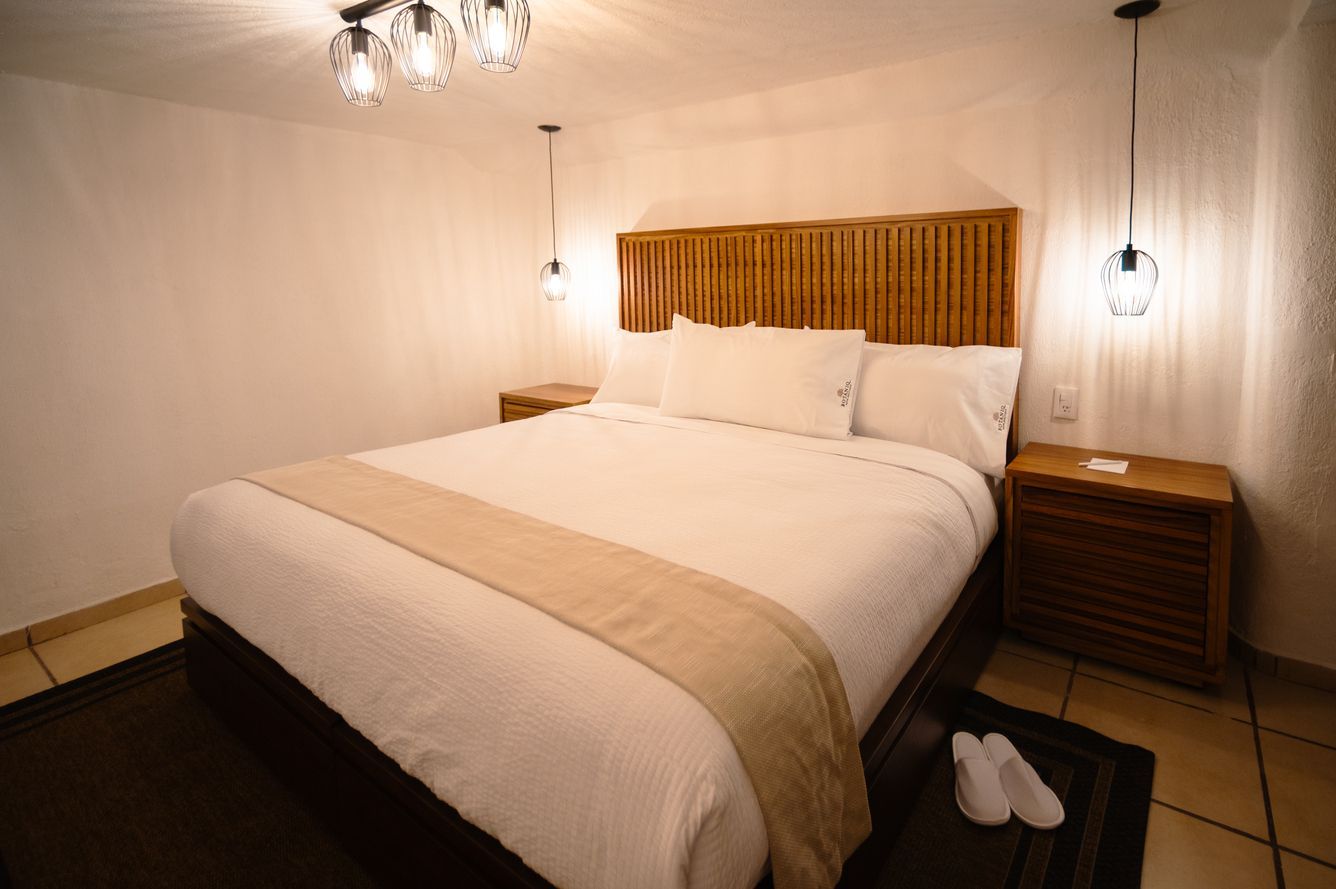 Ofrece un ambiente acogedor con una cama king size y todas las comodidades necesarias para un buen descanso. También incluye una cafetera Nespresso con cápsulas de cortesía y el kit de higiene Bvlgari, asegurando una experiencia agradable.